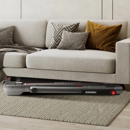 Компактная беговая дорожка нового поколения. Отсутствие поручней и консолей делает модель очень удобной. Толщина полотна 4,7 см. Не нужно искать место для установки и хранения тренажера, оборудование легко помещается под кроватью, шкафом или диваном. При необходимости достаньте дорожку, а после тренировки спрячьте обратно, не загромождая пространство.